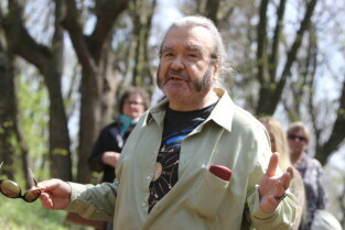 Gdańsk. Otwarcie punktu widokowego w lesie nieopodal ul. Jaśkowa Dolina połączone z festynem dla mieszkańców i miłośników turystyki miejskiej. Nz. Tadeusz Dziewanowski.