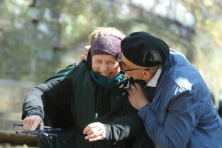 Gdańsk. Otwarcie punktu widokowego w lesie nieopodal ul. Jaśkowa Dolina połączone z festynem dla mieszkańców i miłośników turystyki miejskiej. Nz. Antoni Kozłowski.