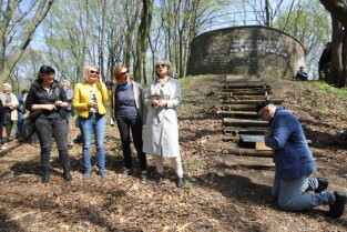 Gdańsk. Otwarcie punktu widokowego w lesie nieopodal ul. Jaśkowa Dolina połączone z festynem dla mieszkańców i miłośników turystyki miejskiej. Nz. Edyta Damszel-Turek-Biuro Rozwoju Gdańska, Małgorzata Kolesińska - Dział Rozwoju Przestrzeni Publicznej, Organizator Paweł Burkiewicz-GZDiZ, Ewa Zielińska-Biuro Rozbudowy Gdańska i Ewa Latoszewska-Biuro Rozbudowy Gdańska.