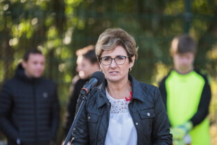 Gdańsk, ZSO Nr 10. Otwarcie setnego boiska. Nz. Dyrektor szkoły Aleksandra Masalon