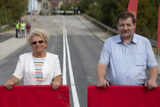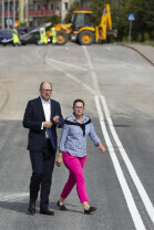 Gdańsk Chełm. Ponowne otwarcie ulicy Wilanowskiej, którą przebudowano w związku z budową tunelu w ciągu Jaru Wilanowskiego. Nz. Przewodniczący Zarządu Dzielnicy Chełm Marian Menczykowski i Z-ca Przewodniczącego Elżbieta Hułas