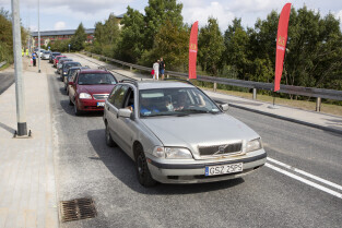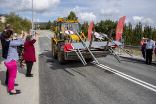 Gdańsk Chełm. Ponowne otwarcie ulicy Wilanowskiej, którą przebudowano w związku z budową tunelu w ciągu Jaru Wilanowskiego. Nz. Z-ca Prezydenta Gdańska Aleksandra Dulkiewicz wręcza upominki pierwszym kierowcom