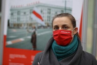 Gdańsk, Długi Targ otwarcie wystawy Białoruś. Droga do wolności. Nz. Wiceprezydent Gdańska Monika Chabior.