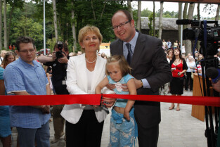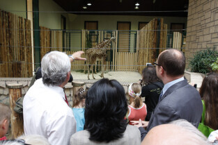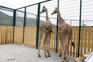 Otwarcie żyrafiarni w gdańskim ZOO. Obecnie na wybiegu znajdują się dwa młode samce, niedługo dołączą do nich trzy młode samice