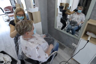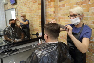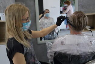 Gdańsk. Otwarte zakłady fryzjerskie po zniesieniu obostrzeń związanych z pandemią koronawirusa. Nz. Sylwia Łomowska, właścicielka Pracowni Arte.