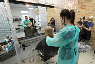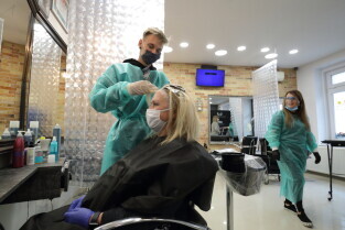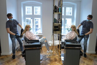 Gdańsk. Otwarte zakłady fryzjerskie po zniesieniu obostrzeń związanych z pandemią koronawirusa. Nz. Pracownia Arte.