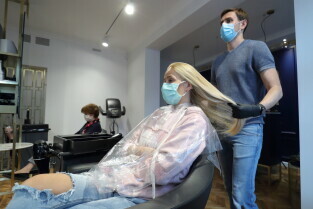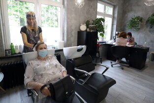 Gdańsk. Otwarte zakłady fryzjerskie po zniesieniu obostrzeń związanych z pandemią koronawirusa. Nz. Salon Fryzjerski Shine Hair and Beauty.