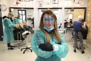 Gdańsk. Otwarte zakłady fryzjerskie po zniesieniu obostrzeń związanych z pandemią koronawirusa. Nz. Patrycja Balińska, właścicielka Salonu Fryzjerskiego Shine Hair and Beauty.