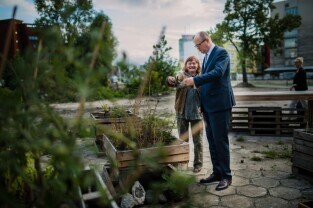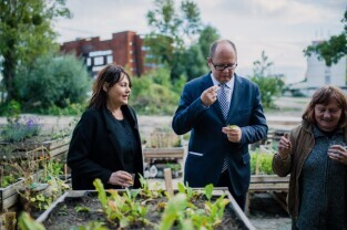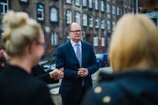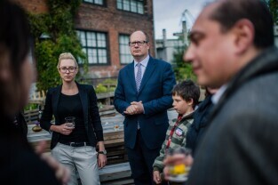 Spotkanie z organizatorami projektu Otwarty Ogród. Gdańsk, Stocznia, Instytut Sztuki Wyspa. Nz. Prezydent Gdańska Paweł Adamowicz