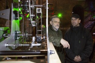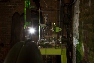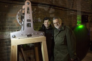 Zegar z najdłuższym wahadłem na świecie o roboczej nazwie P31m. Muzeum Nauki Gdańskiej (Kościół św. Katarzyny). Nz. konstruktorzy zegara dr inż. Grzegorz Szychliński (kierownik muzeum) i Tadeusz Stojałowski (po prawej)