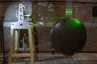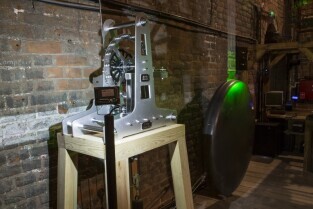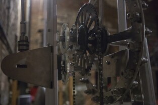 Zegar z najdłuższym wahadłem na świecie o roboczej nazwie P31m. Muzeum Nauki Gdańskiej (Kościół św. Katarzyny). Nz. konstruktorzy zegara, od lewej: dr inż. Grzegorz Szychliński (kierownik muzeum), Tadeusz Stojałowski, Monika Głowińska, Dawid Jaroszewski