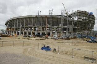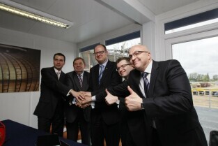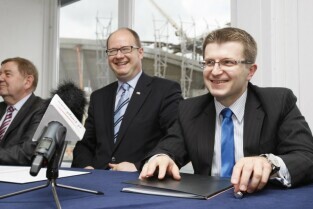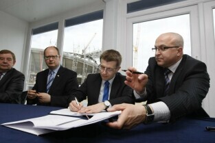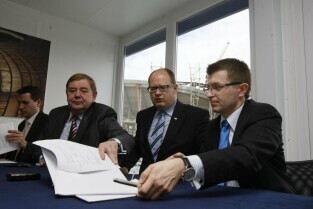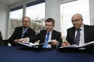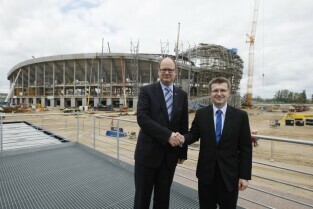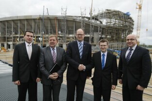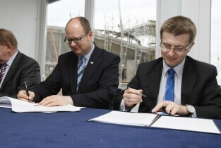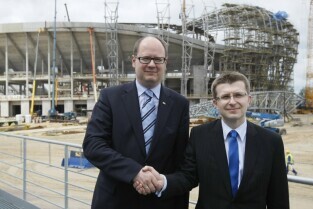 Podpisanie umowy na nazwę budowanego stadionu w Gdańsku Letnicy, który oficjalnie od 31 maja 2010 r. przez 5 lat będzie się nazywał PGE Arena Gdańsk. Nz. budowany stadion