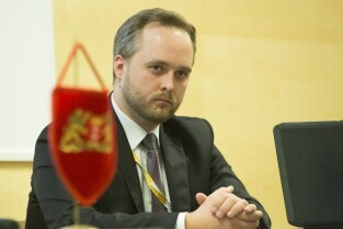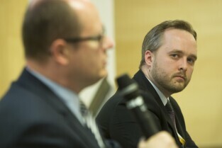 PGE Arena Gdańsk. Konferencja prasowa podsumowująca działalności gdańskiego stadionu od początku jego funkcjonowania oraz prezentująca plany do końca 2014 roku. Nz. Prezes Arena Gdańsk Operator Tomasz Kowalski