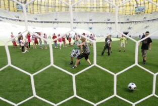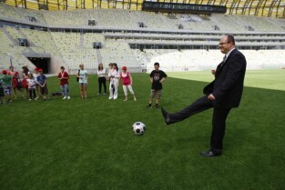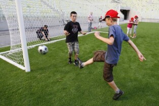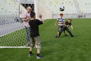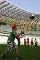 Oficjalne oddanie do użytku PGE Areny - stadionu w Gdańsku Letnicy budowanego na mistrzostwa UEFA Euro 2012. Nz. dzieci z Gorzyc - miejscowości dotkniętej przez powódź w 2010 r., które przyjechały na wakacje na zaproszenie Miasta Gdańska
