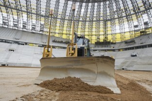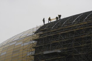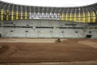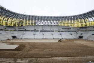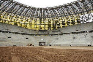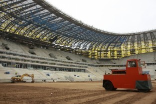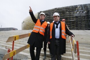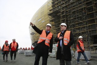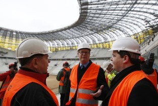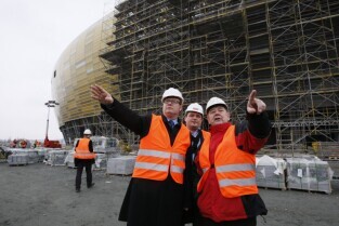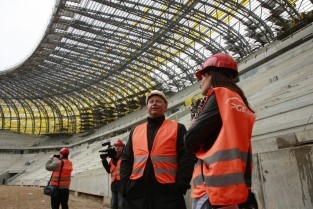 Wizyta Prezydenta Gdańska Pawła Adamowicza na budowie stadionu PGE Arena Gdańsk w dzielnicy Letnica.