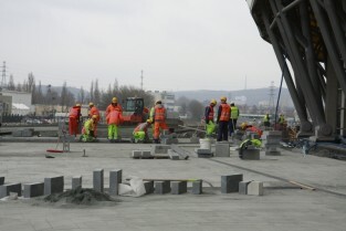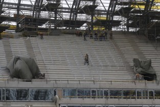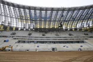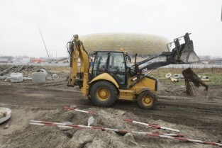 Wizyta Prezydenta Gdańska Pawła Adamowicza na budowie stadionu PGE Arena Gdańsk w dzielnicy Letnica. Nz. Z-ca Prezydenta Gdańska Andrzej Bojanowski