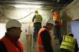 Wizyta Prezydenta Gdańska Pawła Adamowicza na budowie stadionu PGE Arena Gdańsk w dzielnicy Letnica. Nz. od lewej: Poseł na Sejm RP Paweł Orłowski, Z-ca Prezydenta Gdańska Maciej Lisicki, Prezydent Gdańska Paweł Adamowicz, Prezes Spółki BIEG2012 Ryszard Trykosko, Z-ca Prezydenta Gdańska Andrzej Bojanowski