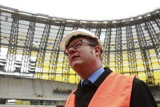 PGE Arena Gdańsk. Wizyta na stadionie prezydenta Gdańska wraz z jego najbliższymi współpracownikami. Nz. Prezydent Gdańska Paweł Adamowicz.