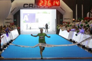 Gdańsk. Druga edycja PZU Gdańsk Maraton. Trasa przebiegała ulicami miasta. Pierwszy linię mety, usytuowaną w Amber Expo minął Paweł Piotraschke. Nz Zwycięzca Paweł Piotraschke ze Słupska.