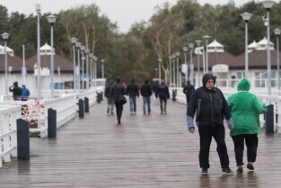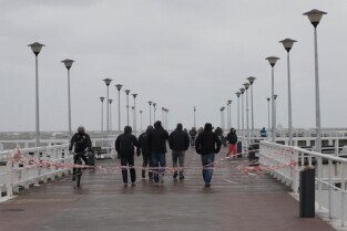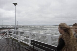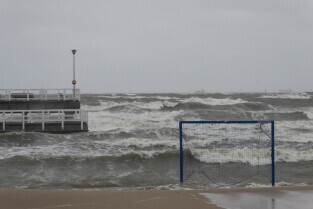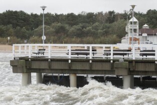 Gdańsk, molo w Brzeźnie. Sztormowa pogoda podczas październikowej wichury