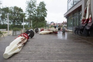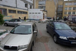 Gdańsk, Przychodnia Morena. Rusztowanie, które spadło na samochody pogoda podczas październikowej wichury