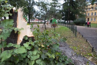 Gdańsk Wrzeszcz, Park de Gaullea. Drzewo przewrócone w wyniku październikowej wichury.