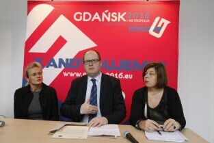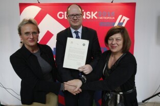 Podpisanie listu intencyjnego o przystąpieniu Gdańska do Paktu dla Kultury, czyli obywatelskiej inicjatywie zmiany przepisów finansowania i funkcjonowania kultury. Nz. Beata Chmiel (po prawej) i Beata Stasińska ze społecznego ruchu Obywateli Kultury oraz Prezydent Gdańska Paweł Adamowicz