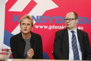 Podpisanie listu intencyjnego o przystąpieniu Gdańska do Paktu dla Kultury, czyli obywatelskiej inicjatywie zmiany przepisów finansowania i funkcjonowania kultury. Nz. Beata Stasińska ze społecznego ruchu Obywateli Kultury oraz Prezydent Gdańska Paweł Adamowicz