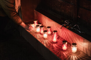 Gdańsk, ul. Partyzantów. Pamięć o ofiarach holocaustu. Koncert „Pamięci naszej strzeżcie” w wykonaniu zespołu klezmerek KLEZMO.RIOT, przeplatany interpretacjami tekstów poetyckich. Po zakończeniu koncertu przed Nową Synagogą zapalono znicze.