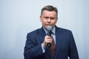 Gdańsk, Muzeum Poczty Polskiej. Pamięci zamordowanych Polaków z Wolnego Miasta Gdańska. Nz. Dyrektor MHMG Waldemar Ossowski