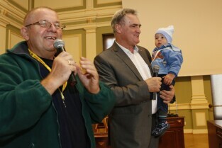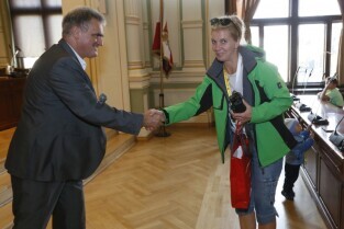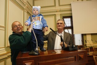 Gdańsk, Nowy Ratusz. Przewodniczący Rady Miasta Gdańska Bogdan Oleszek spotkał się dziś z podopiecznymi fundacji "Pan Władek".