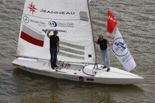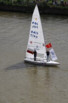 Gdańsk, rzeka Motława. Parada żaglowców, jachtów i innych jednostek pływających na zakończenie Zlotu Żaglowcow Baltic Sail Gdańsk 2012. Nz. Mateusz Kusznierewicz i Dominik Życki na łódce klasy Star