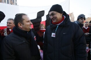 IX Parada Niepodległości ulicami Starego Miasta w Gdańsku zorganizowana w 93. rocznicę odzyskania przez Polskę niepodleglości. Nz. od prawej: organizator Parady Lech Parell i Szef Kancelarii Premiera RP Tomasz Arabski