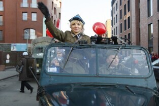 IX Parada Niepodległości ulicami Starego Miasta w Gdańsku zorganizowana w 93. rocznicę odzyskania przez Polskę niepodleglości. Nz. od prawej: Prezydent Gdańska Paweł Adamowicz, Przewodniczący Rady Miasta Gdańska Bogdan Oleszek, gdańska radna Żaneta Geryk