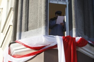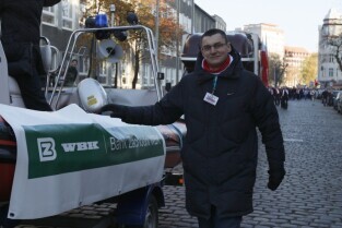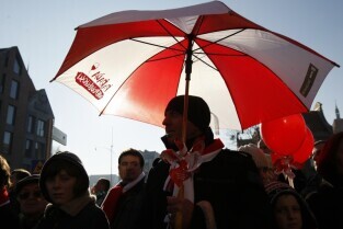 IX Parada Niepodległości ulicami Starego Miasta w Gdańsku zorganizowana w 93. rocznicę odzyskania przez Polskę niepodleglości. Nz. Z-ca Prezydenta Gdańska Maciej Lisicki