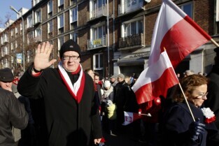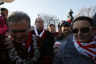 IX Parada Niepodległości ulicami Starego Miasta w Gdańsku zorganizowana w 93. rocznicę odzyskania przez Polskę niepodleglości. Nz. Prezydent Gdańska Paweł Adamowicz