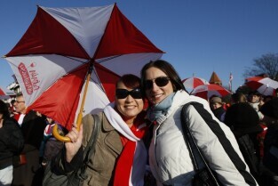 IX Parada Niepodległości ulicami Starego Miasta w Gdańsku zorganizowana w 93. rocznicę odzyskania przez Polskę niepodleglości. Nz. od lewej: gdańskie radne Żaneta Geryk i Maria Małkowska, Szef Kancelarii Premiera RP Tomasz Arabski