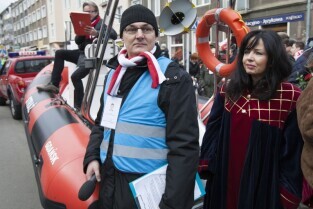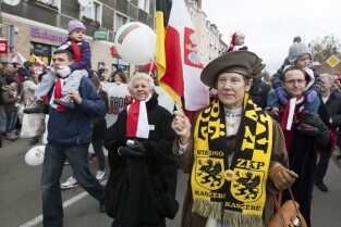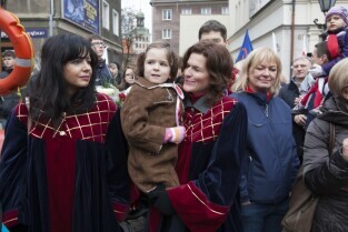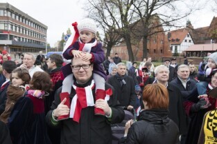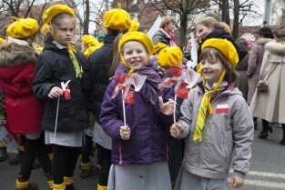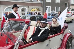 Gdańsk. Parada Niepodległości ulicami Starego Miasta w 95. rocznicę odzyskania przez Polskę niepodległości. Nz. Prezydent Gdańska Paweł Adamowicz z córką Teresą