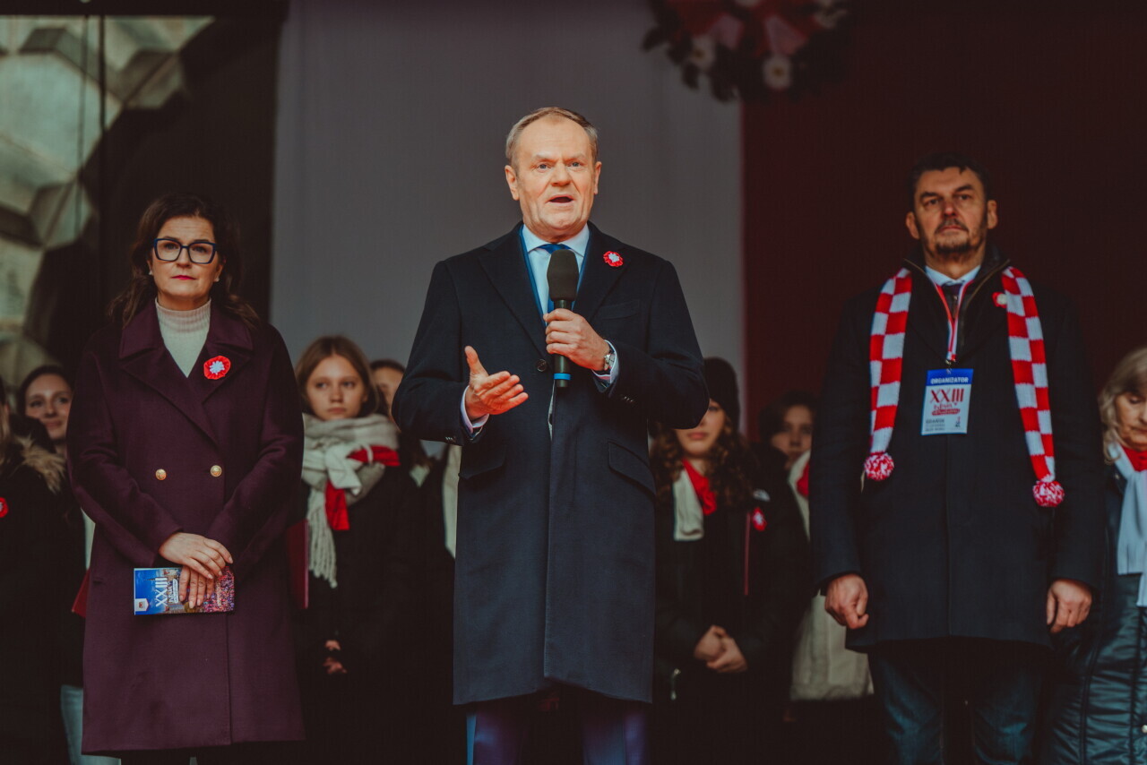 Gdańsk. Z okazji 107 rocznicy odzyskania przez Polskę niepodległości ulicami miasta przeszła barwna Parada Niepodległości. W marszu uczestniczył między innymi Premier Donald Tusk
