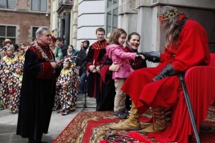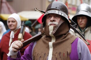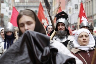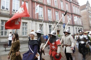 Gdańsk, Trakt Królewski (ul. Długa i Długi Targ). Parada Święta Miasta, które upamiętnia nadanie Gdańskowi w 1457 licznych przywilejów przez Polskiego Króla Kazimierza Jagiellończyka