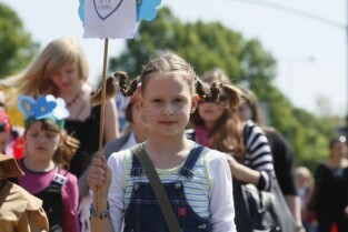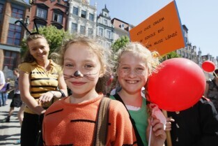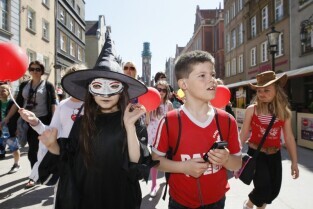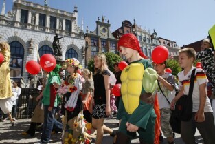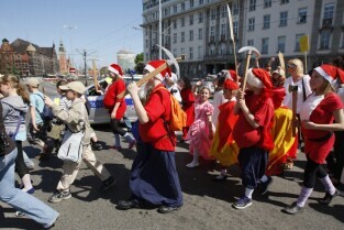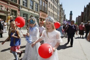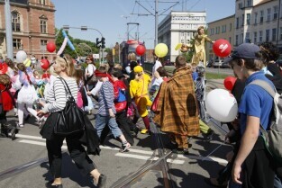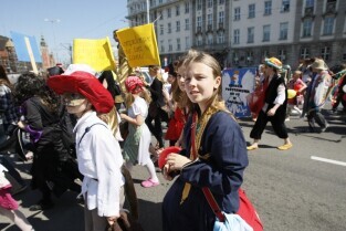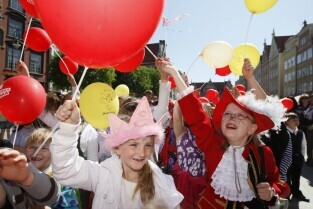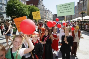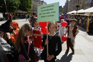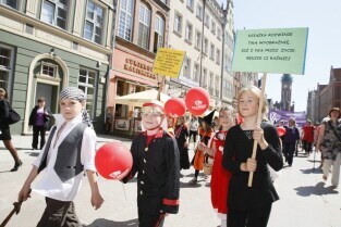 Barwna parada z okazji Dnia Książki i Praw Autorskich, która przeszła ulicami Głównego Miasta w Gdańsku spod Pałacu Młodzieży do Nowego Ratusza.