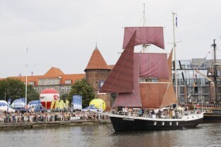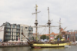 Parada żaglowców i jachtów po rzece Motławie w Gdańsku kończąca zlot Baltic Sail 2011. Nz. rosyjski jacht Shtandart