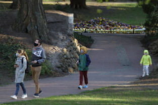 Gdańsk. W poniedziałek, 20 kwietnia, w Gdańsku ponownie zostały otwarte miejskie parki, tereny zielone i rekreacyjne. Nz. Park Oliwski.