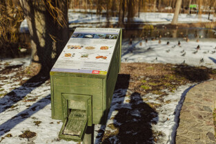 Gdańsk. Park Oruński im. Emilii Hoene. Nz. siatka zabezpieczająca