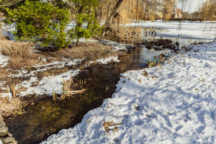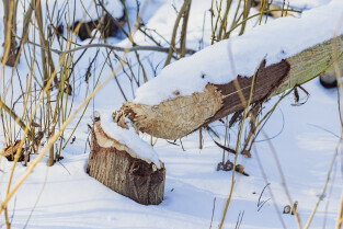 Gdańsk. Park Oruński im. Emilii Hoene. Nz. drzewa powalone przez bobry