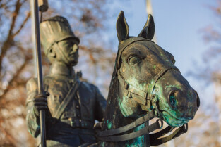 Gdańsk. Park Oruński im. Emilii Hoene. Nz. Pomnik Tatara przy Narodowym Centrum Kultury Tatarów