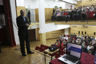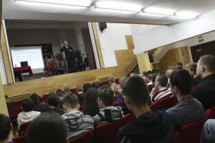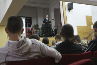 Spotkanie Pawła Adamowicz Prezydenta Gdańska z uczniami XIII LO w Gdańsku