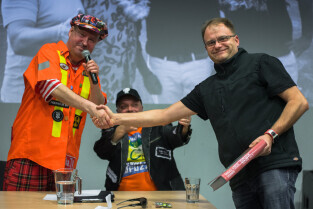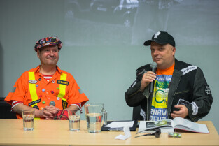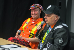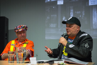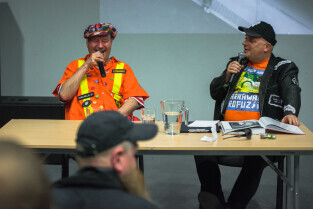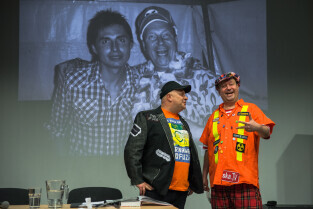 Gdańsk, CSW Łaźnia ul. Jaskółcza. Paweł Koñjo Konnak „Explozja zlewu vol. 2” – promocja książki. Nz. Krzysztof Skiba i Paweł Konnak