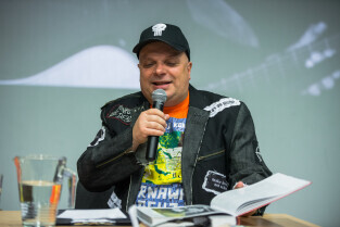 Gdańsk, CSW Łaźnia ul. Jaskółcza. Paweł Koñjo Konnak „Explozja zlewu vol. 2” – promocja książki. Nz. Krzysztof Skiba