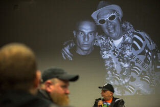 Gdańsk, CSW Łaźnia ul. Jaskółcza. Paweł Koñjo Konnak (Nz) „Explozja zlewu vol. 2” – promocja książki. Nz. Krzysztof Skiba